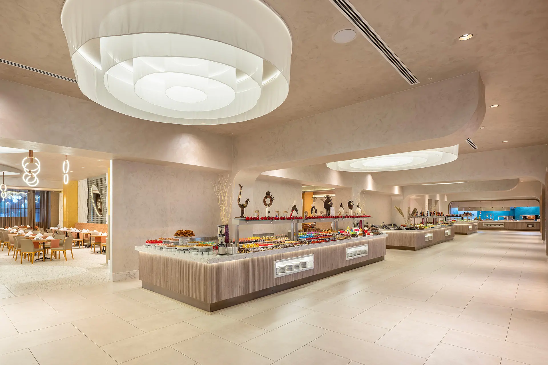 RezervasyonDucale Lara’nın ana restoranı Bellini, dünya mutfaklarının seçkin tatlarını zengin açık büfe konseptiyle sunuyor.
