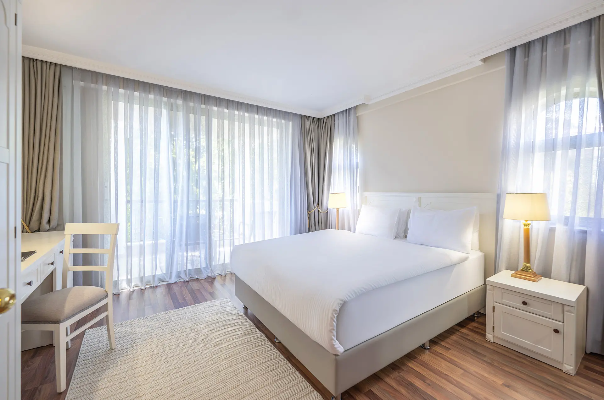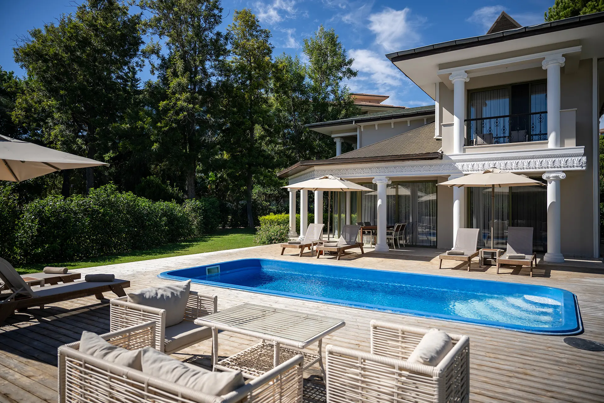 Ducale Lara’nın en ayrıcalıklı konaklama seçeneği olan villalar, 130 m²’lik geniş yaşam alanı ve özel tasarımıyla lüksü yeniden tanımlıyor. Maksimum 6 yetişkin + 2 çocuk kapasitesine sahip bu özel villalarda; üç çift kişilik yatak, geniş bir oturma alanı, özel havuz ve bahçe içinde huzur dolu bir atmosfer sizi bekliyor. Mahremiyet, konfor ve zarafetin kusursuz uyumu, tatilinize unutulmaz bir imza atıyor.